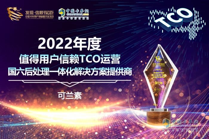 2022年2月22日,由卡車(chē)網(wǎng)所舉辦的第七屆發(fā)現(xiàn)信賴(lài)TCO運(yùn)營(yíng)價(jià)值評(píng)選暨用戶(hù)評(píng)選活動(dòng)與大家如約而至,在經(jīng)過(guò)一年的走訪(fǎng)調(diào)查,廣泛聽(tīng)取用戶(hù)與車(chē)企評(píng)述后,可蘭素以絕對(duì)優(yōu)勢(shì)摘取了“2022年度值得用戶(hù)信賴(lài)國(guó)六后處理一體化解決方案提供商”大獎(jiǎng)。