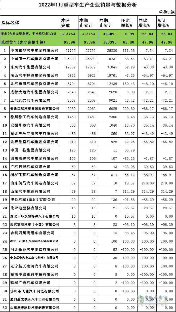 2022年1月重卡企業(yè)銷(xiāo)量與數(shù)據(jù)分析