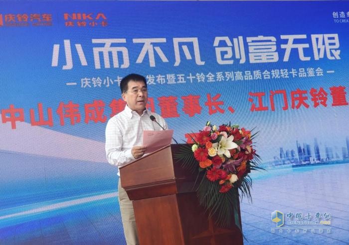 慶鈴股份副總經(jīng)理、慶鈴鑫源董事長陳代勁蒞臨現(xiàn)場,為本次江門慶鈴鈴咖小卡上市活動獻(xiàn)上祝福,他表示:“慶鈴鈴咖小卡滿足用戶多場景物流需求,順應(yīng)藍(lán)牌新政,針對性研發(fā)推出的高品質(zhì)城配輕卡,它不僅與五十鈴共線生產(chǎn),還符合當(dāng)下新藍(lán)派輕卡法規(guī)的各項政策,合規(guī)出行無憂,為用戶提供一款超高性價比輕卡。“小而不凡,創(chuàng)富無限”,慶鈴小卡個子小,能量大,更劃算,勢必在未來的市場上,再鈴巔峰!接下來,我們還將繼續(xù)對旗下產(chǎn)品升級,持續(xù)為消費(fèi)者創(chuàng)造舒適、安全、高效的出行體驗,在高品質(zhì)商用車的征程上,不斷前行。”