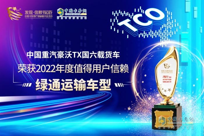 中國重汽豪沃TX國六載貨車榮獲“2022年度值得用戶信賴綠通運(yùn)輸車型”獎