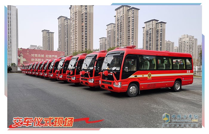 交車(chē)儀式現(xiàn)場(chǎng),上饒市消防救援支隊(duì)黨委委員為基層大隊(duì)主官發(fā)放了“金鑰匙”。嶄新的消防運(yùn)兵車(chē)正式投入使用。金龍客車(chē)以過(guò)硬的產(chǎn)品力,擔(dān)當(dāng)起艱巨而光榮的任務(wù)!
