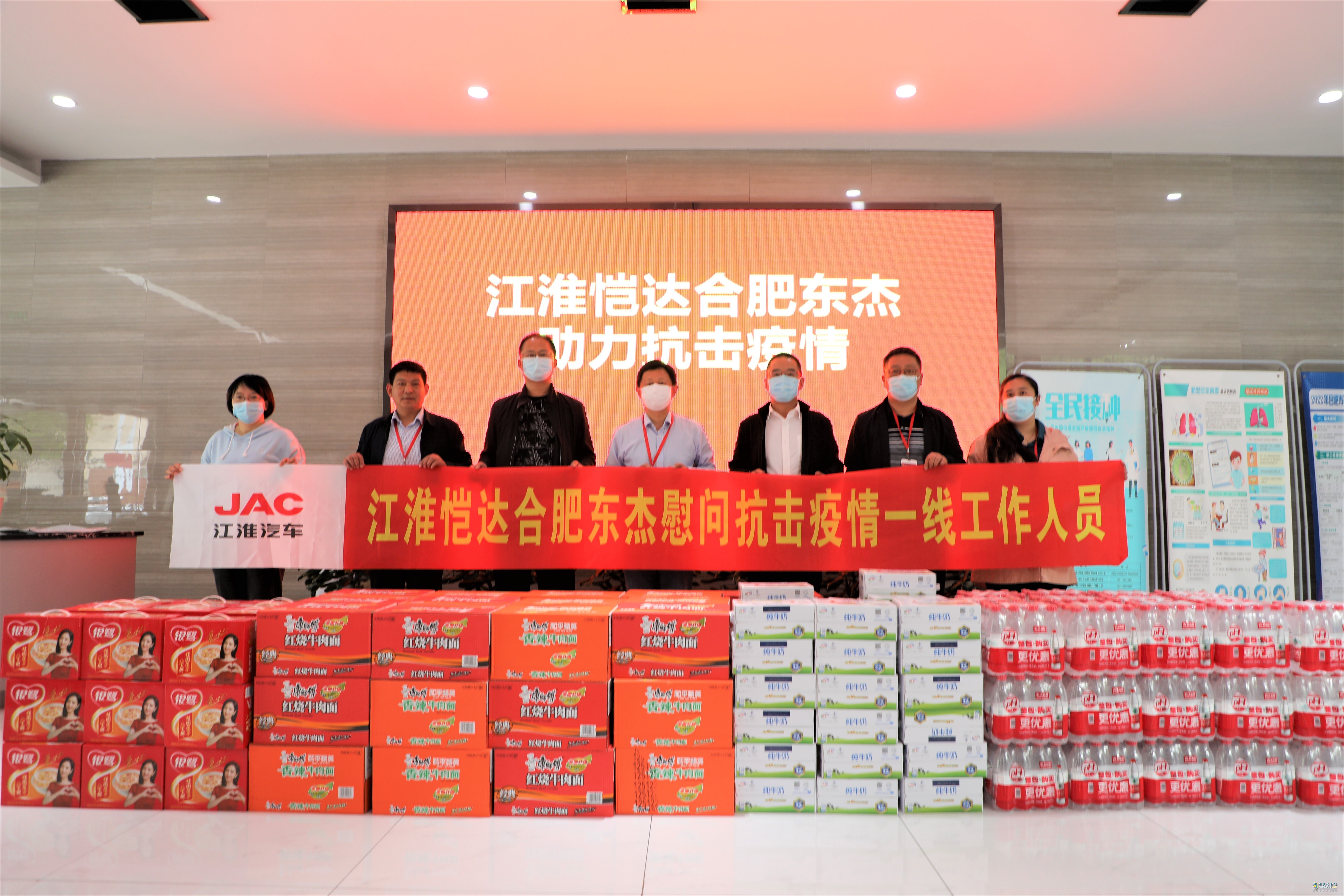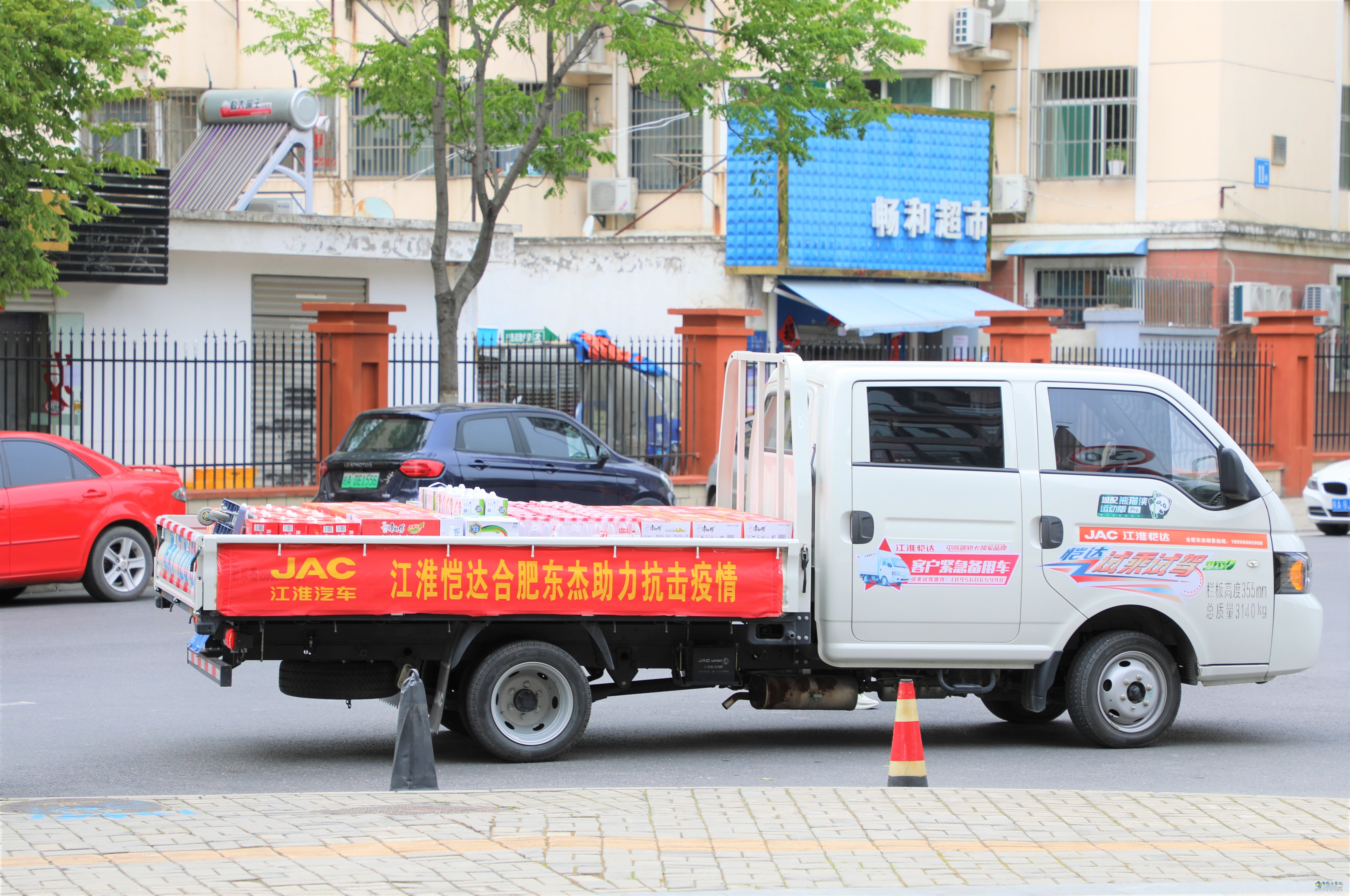 2022年4月16日,江淮愷達(dá)一級(jí)經(jīng)銷商合肥東杰在得知將要全合肥演練的消息后,自主采購純凈水、奶、八寶粥、方便面等生活物資各40箱,慰問廬陽區(qū)亳州路街道一線抗疫人員,并為防疫點(diǎn)儲(chǔ)備物資以便為日夜不停保障運(yùn)輸生命線的貨車司機(jī)提供免費(fèi)的物資便利。