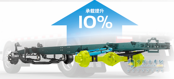 飛碟奧馳V3乘風(fēng)版匹配3.5t和5.0t大噸位后橋,兩種后橋及速比,底氣十足,滿載從容;車架采用的則是大截面高強(qiáng)度大梁鋼,承重部位截面同級最大,承載提升10%。此外,車型的后板簧采用7+2結(jié)構(gòu),板簧更多,承載更強(qiáng),承載力可提升15%。