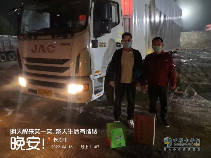 考慮到駕駛員師傅將繼續(xù)出發(fā),但停車(chē)場(chǎng)因疫情防控沒(méi)有地方吃飯,而剩余的運(yùn)輸路程還有500多公里,張站長(zhǎng)將為自己準(zhǔn)備的食物和水送給了駕駛員師傅。4月23日凌晨,和山西長(zhǎng)治服務(wù)站工作人員告別后,張站長(zhǎng)立即返回河南,于次日凌晨3點(diǎn)在焦作服務(wù)區(qū)稍作休息后,早上7點(diǎn)繼續(xù)趕路,并提前聯(lián)系當(dāng)?shù)厣鐓^(qū)主動(dòng)報(bào)備、隔離。至此,這場(chǎng)跨省救援的故事圓滿(mǎn)結(jié)束。