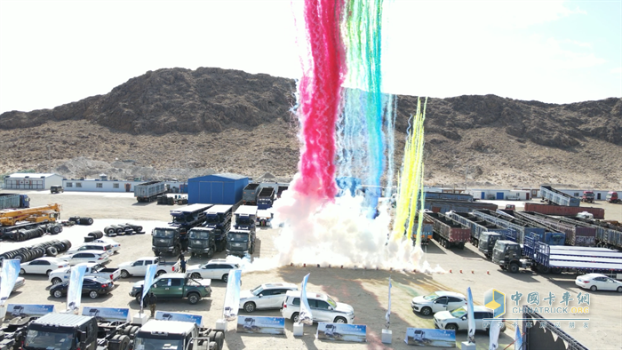 在所有嘉賓卡友的注視下,烏拉特中旗鋮源貿(mào)易有限責(zé)任公司董事長徐向成、汾陽市瑞通能源有限公司駐內(nèi)蒙口岸總經(jīng)理宋瑞琪、一汽商用車海外營銷部蒙古辦事處經(jīng)理衣中偉等領(lǐng)導(dǎo)共同登臺,一汽商用車海外營銷部蒙古辦事處經(jīng)理衣中偉 將代表著“中國制造”高品質(zhì)的車鑰匙與精美車模交于烏拉特中旗鋮源貿(mào)易有限責(zé)任公司董事長徐向成、汾陽市瑞通能源有限公司駐內(nèi)蒙口岸總經(jīng)理宋瑞琪,伴隨著熱烈的掌聲,縈繞著現(xiàn)場的熱情,209輛J6P6x4牽引車正式啟程,在國際貿(mào)易的廣闊大道,行出解放品牌的鏗鏘車轍,展示中國制造的強勁力量。