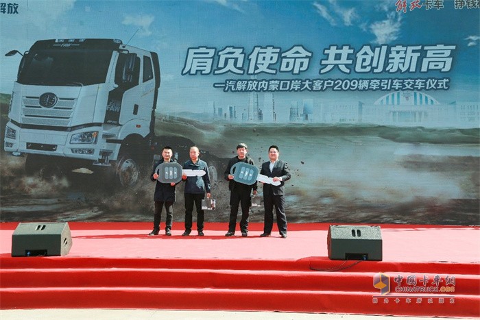 同行“中國夢”,篤行“解放路”。“一汽解放內(nèi)蒙口岸大客戶209輛牽引車交車儀式”的順利舉辦,不僅宣告著一汽解放2022年出戰(zhàn)告捷,更是解放品牌踐行國策,解放產(chǎn)品走向全球的重要里程,一汽解放,將借勢起航,追波逐浪,在“中國第一,世界一流”的助夢進程中,昂首闊步;在國家“雙邊經(jīng)貿(mào)合作”戰(zhàn)略的指引下,在“互促共進”發(fā)展理念的踐行中,激蕩前行!
