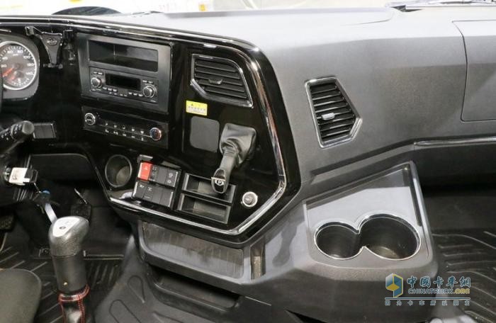 解放青汽JH5駕駛室內(nèi)部有效高度可達(dá)2.1米,夫妻、父子兩人駐車休息空間充裕。寬敞平地板空間使得中控臺居中位置空間得到充分利用,內(nèi)置抽屜存放不少簡易隨車物品,上端的預(yù)留孔防止水杯、煙灰缸更是便捷。