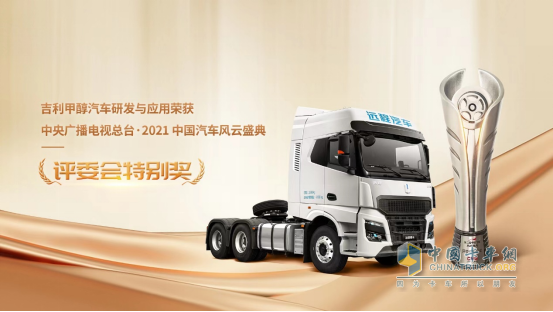 2022年4月26日,中央廣播電視總臺·2021 中國汽車風云盛典頒獎典禮上,吉利甲醇汽車研發(fā)與應(yīng)用獲得2021年度評委會特別獎。