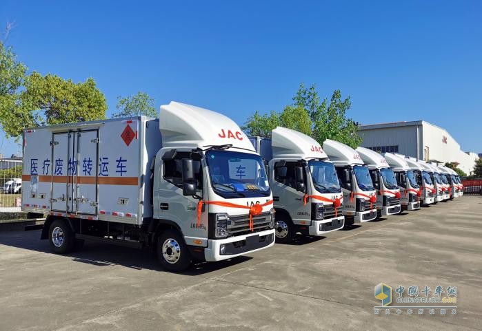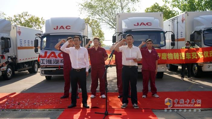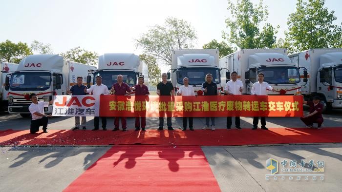 2022年5月6日,10輛江淮輕卡醫(yī)療廢物轉(zhuǎn)運(yùn)車在江淮專用車公司正式交付安徽浩悅環(huán)境科技有限責(zé)任公司。江淮輕型商用車營銷公司總經(jīng)理助理陳哲冰,江淮輕型商用車制造公司副總經(jīng)理、江淮專用車公司總經(jīng)理張時(shí)忠,安徽浩悅環(huán)境科技有限責(zé)任公司副總經(jīng)理高巍以及相關(guān)人員參加交車儀式。即日起,10輛“抗疫1號(hào)”醫(yī)療廢物轉(zhuǎn)運(yùn)車駛向抗疫一線,為疫情常態(tài)化防控貢獻(xiàn)力量。