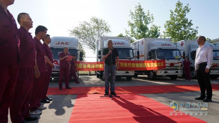 活動(dòng)現(xiàn)場(chǎng),江淮輕型商用車制造公司副總經(jīng)理、江淮專用車公司總經(jīng)理張時(shí)忠首先致歡迎辭。他表示,抗疫責(zé)無旁貸,行動(dòng)詮釋擔(dān)當(dāng)。江淮輕卡以堅(jiān)定的信念、高效的行動(dòng)投入到抗擊疫情的戰(zhàn)斗中,立足抗疫所需,研發(fā)和快速交付各種抗疫車輛,全方位助力疫情常態(tài)化防控。