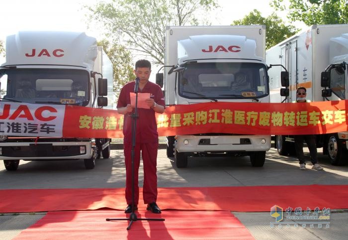隨后,安徽浩悅環(huán)境科技有限責(zé)任公司副總經(jīng)理高巍進(jìn)行了發(fā)言。他表示,疫情給全社會(huì)帶來了極大考驗(yàn),特別是醫(yī)療廢物激增,帶來前所未有的轉(zhuǎn)運(yùn)挑戰(zhàn)。江淮輕卡發(fā)揮產(chǎn)品優(yōu)勢(shì),快速生產(chǎn)并交付10臺(tái)醫(yī)療廢物轉(zhuǎn)運(yùn)車,既能保證轉(zhuǎn)運(yùn)安全和效率,還擁有完善的售后服務(wù),為疫情常態(tài)化防控和保護(hù)人民健康做出了突出貢獻(xiàn)。