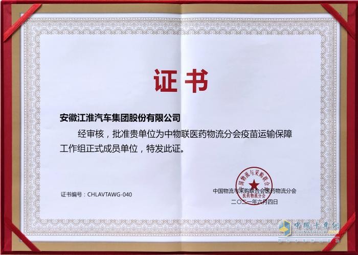 唯有優(yōu)秀的產(chǎn)品才能得到用戶(hù)的信賴(lài)、獲得行業(yè)的認(rèn)可。江淮1卡抗疫1號(hào)疫苗運(yùn)輸車(chē)自上市以來(lái),獲得了以中物聯(lián)醫(yī)藥物流分會(huì)為代表的行業(yè)協(xié)會(huì)、以九州通醫(yī)藥集團(tuán)為代表的行業(yè)醫(yī)藥物流企業(yè)的高度認(rèn)可,并大批量采購(gòu)。2021年6月4日,江淮汽車(chē)成為中物聯(lián)醫(yī)藥物流分會(huì)疫苗運(yùn)輸保障工作組正式成員單位中唯一的整車(chē)廠(chǎng)家。