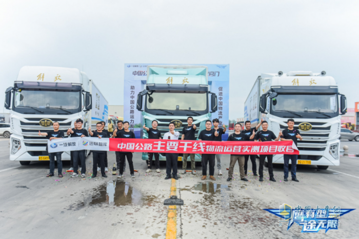 2022年6月12日,在國家物流樞紐城市滄州傳化物流園內(nèi),隨著解放鷹途商務艙、頭等艙、生活艙三輛車依次穿過收官門抵達指定位置,運聯(lián)研究院實測成員和實測項目成員的車隊全部抵達,此次“中國公路主要干線物流運營實測項目”正式收官。