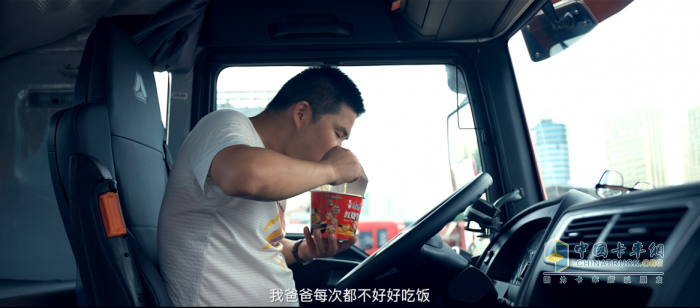 責任催促著他們奔向遠方,有時,還需要接受來自路政、交警、市場等層層監(jiān)管;為了趕路,他們需要時常保持高強度的駕駛,甚至一口熱飯都顧不上吃,卡車司機大多都患有不同程度的職業(yè)病和胃病。在家庭之中,他們常常出門在外,一個月兩個月甚至一年都難在家中呆上幾天,是家人眼中的“隱形人”,然而無論離家多遠,作為父親,他們始終記掛著家中的孩子。與之相對的,家中的孩子對他們一樣惦念。