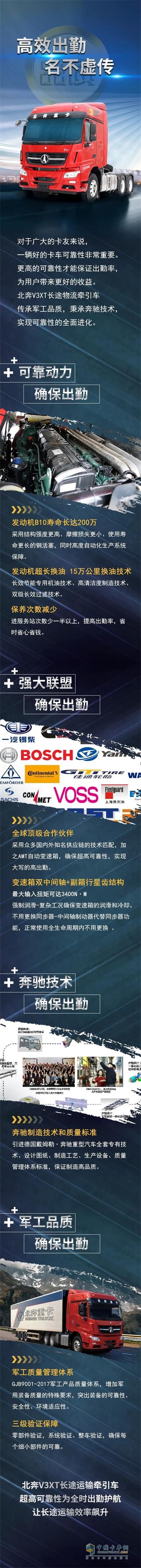 對于廣大卡友來說,一輛好的卡車可靠性非常重要。更高的可靠性才能保證出缺勤率,為用戶帶來更好的收益。北奔V3XT長途物流牽引車傳承竣工品質(zhì),秉承奔馳技術(shù),實現(xiàn)可靠性的全面進化。