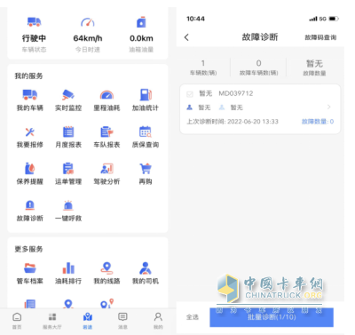 汽車就像一臺精密的機(jī)器,由數(shù)萬個零件構(gòu)成,一旦某個零件出現(xiàn)問題,就會引發(fā)連鎖反應(yīng)。但有些小隱患并不能通過日常駕駛發(fā)現(xiàn),若等到小隱患變成大故障時才想起追根朔源,那么不僅影響運(yùn)輸時效,更是無法保障卡友們的安全。為解決卡友痛點(diǎn),上汽紅巖從用戶需求出發(fā),聯(lián)合重卡匯科技公司研發(fā)出全新一代X-connect智能網(wǎng)聯(lián)系統(tǒng)。當(dāng)卡友們遇到車輛故障時,就可登錄上汽紅巖重卡匯APP利用車聯(lián)網(wǎng)云技術(shù),通過線上診斷的方式對汽車故障進(jìn)行檢測。與傳統(tǒng)診斷模式相比,這種云診斷技術(shù)最大的特點(diǎn)是在線遠(yuǎn)程對車輛22個常用進(jìn)行診斷并產(chǎn)生診斷報告供客戶查閱。只要車輛出現(xiàn)問題,技術(shù)人員都可以遠(yuǎn)程連接到車輛、檢測車輛狀態(tài)、提供解決方案,大大提高了車輛維保效率以及行車安全性。
