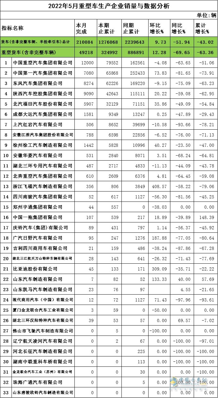 2022年5月重卡企業(yè)銷(xiāo)量與數(shù)據(jù)分析