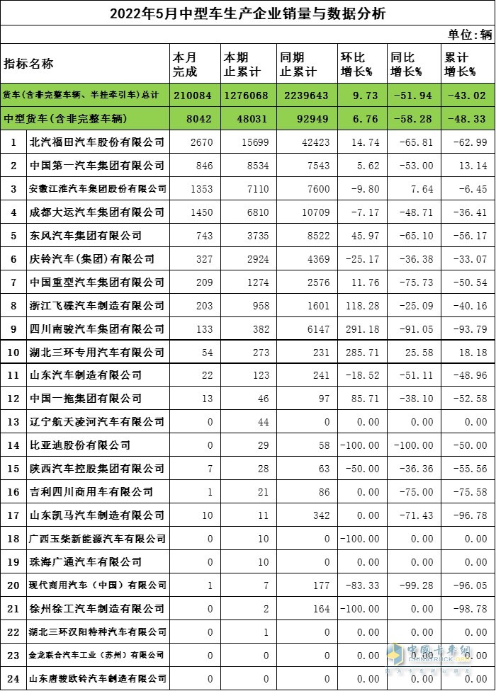 2022年5月中卡企業(yè)銷量與數(shù)據(jù)分析