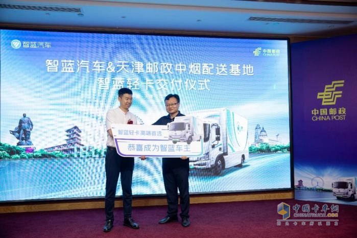 2022年7月2日,11臺智藍(lán)輕卡交付天津郵政中煙配送基地。這是繼天津郵政首次批量采購后的再次合作,雙方合力構(gòu)建“綠色郵政”,助推京津冀綠色物流高質(zhì)量發(fā)展。