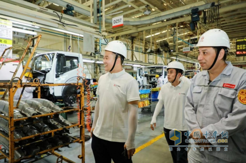 王哿、小明參觀東風(fēng)凱普特生產(chǎn)線