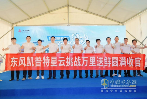 “挑戰(zhàn)萬里送鮮”活動在盛暑高溫的天氣下,為沿途的人們送去了海鮮、蔬菜、水果、禽肉等各類物資。此次萬里征程,東風(fēng)凱普特星云的優(yōu)秀動力鏈和承載力充分滿足了城際、省際、長途配送冷鏈運輸?shù)目量桃蟆?/p>