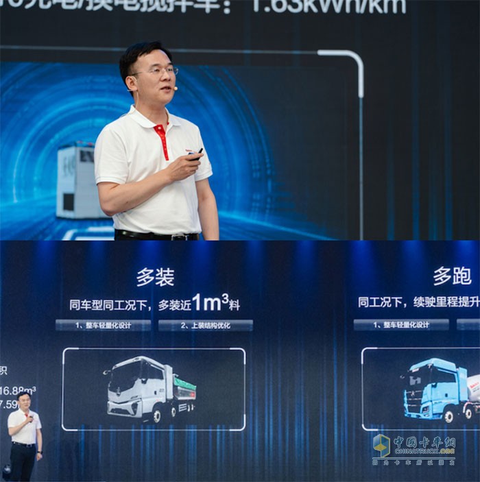 本次新品具有“多、省、好、輕”優(yōu)勢。同車型同工況下,可實(shí)現(xiàn)多裝1方,續(xù)航提升10%以上,電耗降低10%以上,能量回收率可達(dá)21.72%;每1萬公里,較上一代車型節(jié)省費(fèi)用3200元,實(shí)現(xiàn)40分鐘電量20%-80%超級(jí)快充、1.9分鐘快速換電。并且,具有“好駕控、好空間、好安全、好高效、好智能、好管理”特點(diǎn)。采用環(huán)抱式智能座艙,空間提升50%、更舒適更便捷;與上一代車型相比,整車還減重1000公斤以上。