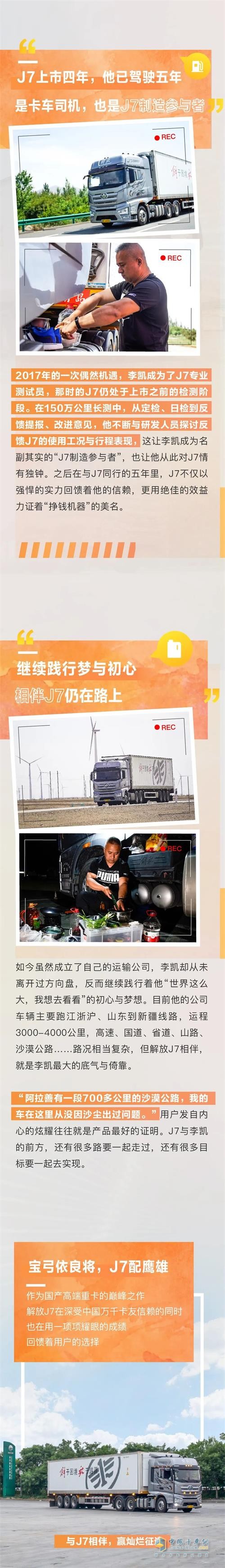2017年J7上市前夕,解放向用戶發(fā)起專業(yè)測(cè)試員招募,心懷對(duì)解放的信賴,李凱果斷報(bào)名成為解放特約評(píng)價(jià)師,并由此開啟了與J7長(zhǎng)達(dá)5年的結(jié)伴之路。