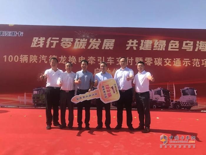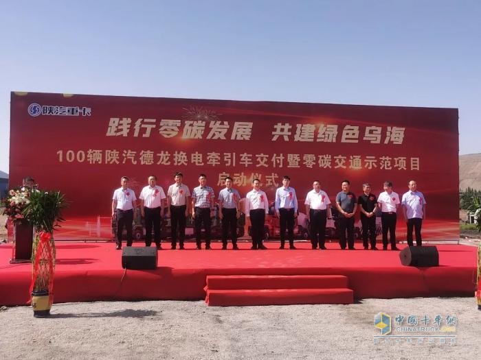 2022年7月27日,陜汽重卡100輛德龍新能源牽引車交付暨零碳交通示范項(xiàng)目啟動(dòng)儀式在烏海隆重舉辦。