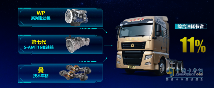 車輛搭載的WP14T發(fā)動機是全球首款熱效率突破51%的柴油機,由濰柴為中國重汽專屬定制,以全球領(lǐng)先技術(shù)實現(xiàn)整車動力性能的大幅提升;配合由中國重汽自主研發(fā)的第七代S-AMT16變速箱,通過空檔滑行功能和駕駛行為優(yōu)化等智慧功能,實現(xiàn)智慧節(jié)油、智能操控,無論新手還是老司機,怎么開都省油;采用國內(nèi)唯一自帶油濾器的小速比曼技術(shù)后橋,以超高傳動效率實現(xiàn)高效節(jié)油。高效專屬動力鏈配合超低風(fēng)阻駕駛室,將體系化節(jié)油的優(yōu)勢發(fā)揮到極致,綜合節(jié)油11%。