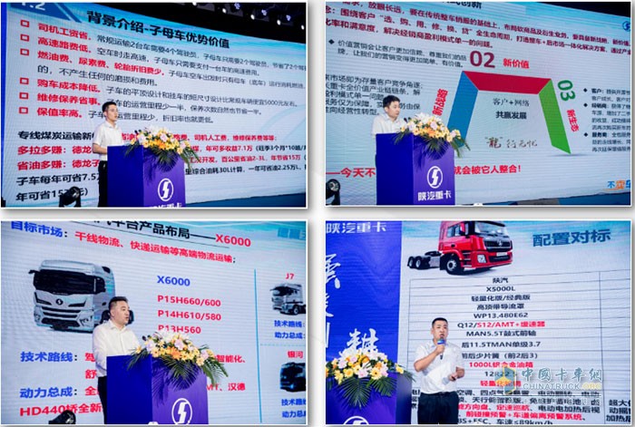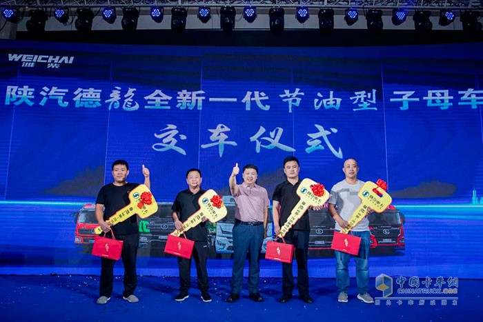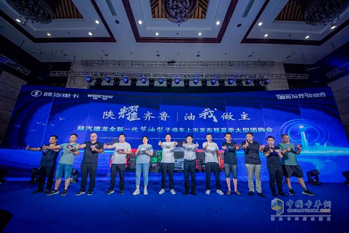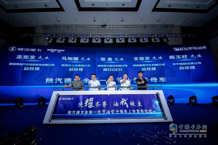 濰柴動力股份有限公司執(zhí)行CEO張泉、陜西重型汽車有限公司總經(jīng)理支保京、陜西法士特集團(tuán)公司總經(jīng)理馬旭耀、聊城集鑫汽車銷售服務(wù)有限公司總經(jīng)理孟憲發(fā)以及客戶代表茌平隆順運(yùn)輸公司總經(jīng)理陳玉柱共同發(fā)布陜汽德龍全新一代節(jié)油型子母車。陜汽此款在貨運(yùn)市場拉煤神器的誕生,將再度助力卡友們持續(xù)創(chuàng)富。