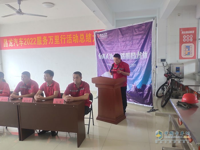 孫復(fù)森董事長對(duì)于此次服務(wù)萬里行活動(dòng)發(fā)表了總結(jié)講話。孫復(fù)森董事長肯定,2022年的“星火之光”服務(wù)萬里行活動(dòng),是一次圓滿成功,收獲滿滿的活動(dòng)。服務(wù)團(tuán)隊(duì)通過和客戶充分溝通,集思廣益,收獲了不少好的建議,好的想法。接下來,昌龍汽車將會(huì)根據(jù)不同地區(qū)的不同路況以及不同的運(yùn)輸貨物,研發(fā)更實(shí)用,更細(xì)致的專用車,著重突出專用的效果。