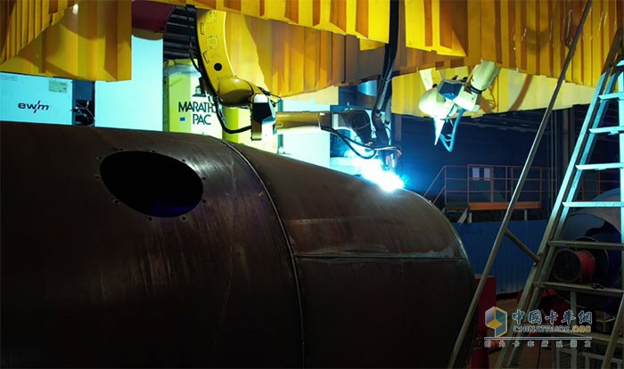 卡車網(wǎng)了解到,強(qiáng)冠罐車業(yè)務(wù)集團(tuán)混凝土攪拌車產(chǎn)線中的葉片成型、定位、焊接技術(shù),屬于行業(yè)獨一無二。高精度的葉片,在行業(yè)內(nèi)首家采用對接工藝,實現(xiàn)葉片和筒體的無縫對接,以及自動化焊接,解決了傳統(tǒng)由人工進(jìn)入罐內(nèi),密閉空間作業(yè),安全隱患大的問題。同時,降低了產(chǎn)品的卸料殘余率,降低離析風(fēng)險,減少葉片磨損,攪拌性能大幅度提升,也提升了產(chǎn)品壽命。