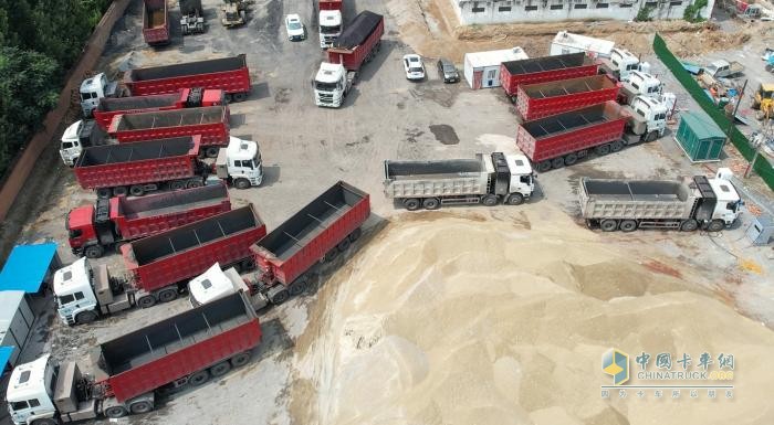 2015年他又貸款增加車輛,增加到20多臺(tái),到2020年增加到30多臺(tái)卡車,第一次從10臺(tái)增加到20臺(tái)感覺好難啊,一下子需要這么多資金,還需要增加這么多駕駛員,而且場(chǎng)地也不夠用,開支非常大,要緊牙關(guān)挺了過來,現(xiàn)在車輛已增加到50多臺(tái),45臺(tái)是華菱重卡,其中28臺(tái)是華菱H7電動(dòng)重卡。