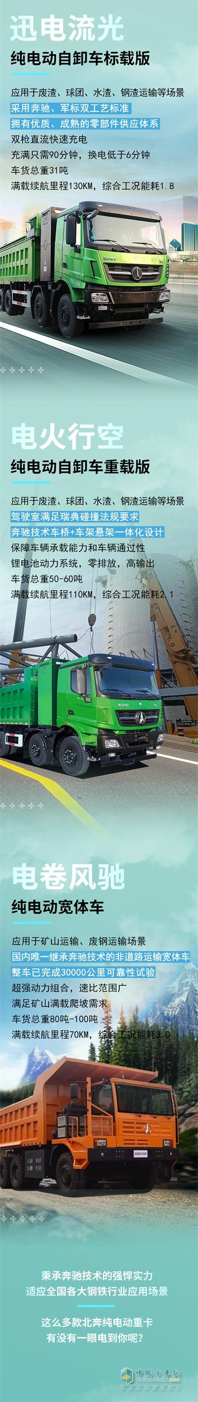在“雙碳”目標下,北奔重汽率先進入新能源重卡領(lǐng)域,先試先行,打造新能源重卡在鋼鐵企業(yè)運營典范,北奔重汽擁有最全面的行業(yè)數(shù)據(jù)資源,產(chǎn)品迭代已達到5代產(chǎn)品。作為鋼鐵企業(yè)綠色發(fā)展之路上的最佳戰(zhàn)略伙伴,持續(xù)加快推進鋼鐵行業(yè)綠色轉(zhuǎn)型發(fā)展。