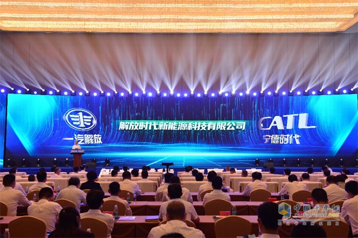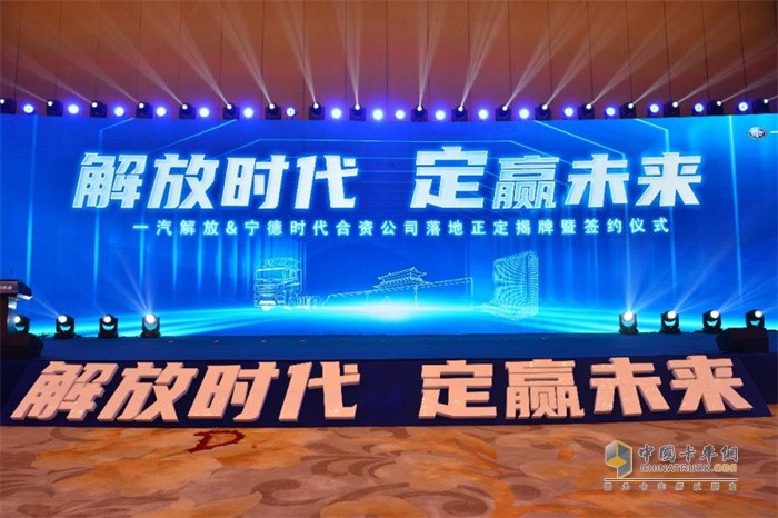 活動最后,一汽解放總經(jīng)理、黨委副書記吳碧磊與寧德時代商用事業(yè)部總裁韓偉共同為解放時代新能源科技有限公司揭牌。