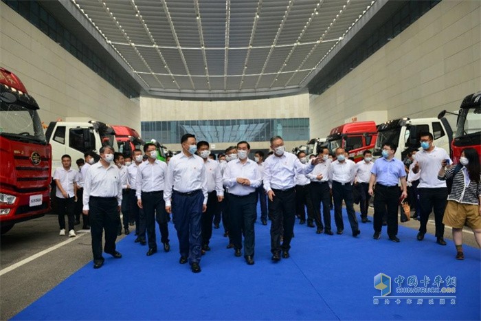 活動結(jié)束后,與會領(lǐng)導(dǎo)、嘉賓集體參觀了產(chǎn)品展區(qū)。本次產(chǎn)品品鑒包括解放城市物流配送、環(huán)衛(wèi)、渣土、混凝土攪拌運(yùn)輸車等系列新能源專用車,技術(shù)涵蓋重、中、輕卡的純電動、混動、氫燃料電池;紅旗HQ9、全新H5、EQM5、H9、H9+、LS7;奔騰產(chǎn)品NAT等平臺。