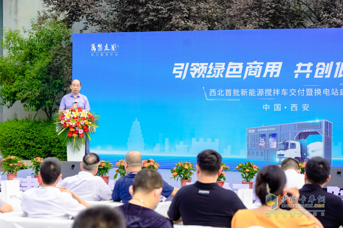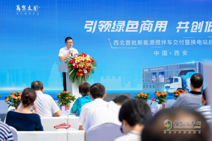 本次活動意義重大,這不僅是陜西省首批新能源攪拌車的交付,除此之外,從合作、選址到落站,陜西恒達(dá)福換電站僅用了45天,跑出了西安基建的“加速度”,同時也展現(xiàn)了萬物友好助力雙碳推進(jìn)的決心和速度。