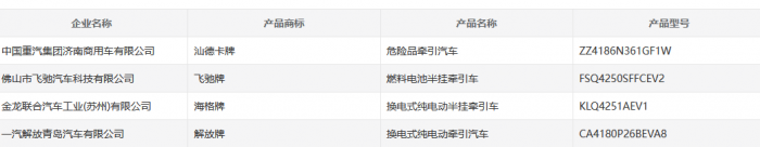 佛山飛馳汽車上榜了一款燃料電池牽引車