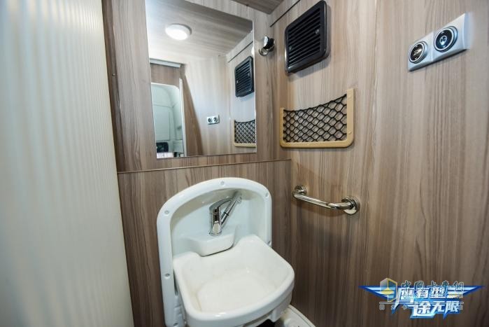 洗浴間內(nèi)還配備有鏡子、扶手以及儲物網(wǎng)兜,愛美的卡嫂洗漱或者浴后可以對著鏡子畫一個美美的妝,儲物網(wǎng)兜可以將各色的化妝品一一收納,即使在卡車上也可以化身精致女人。