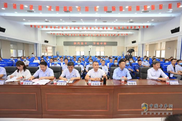 中國(guó)物流與采購(gòu)聯(lián)合會(huì)?;贩謺?huì)副秘書(shū)長(zhǎng)蔡執(zhí)陽(yáng)、陜西重型汽車(chē)有限公司總經(jīng)理支保京、陜重汽銷(xiāo)售總監(jiān)兼銷(xiāo)售公司總經(jīng)理趙承軍、陜汽控股運(yùn)營(yíng)總監(jiān)兼運(yùn)營(yíng)管理部部長(zhǎng)周輝、山東時(shí)代天成投資有限公司董事長(zhǎng)兼總經(jīng)理何錫勇、陜西華拓企業(yè)管理控股有限公司、陜西華立能源集團(tuán)有限公司、西安瑞元機(jī)械科技有限公司和陜重汽相關(guān)職能部室、改裝廠以及媒體界領(lǐng)導(dǎo)嘉賓參加此次會(huì)議。