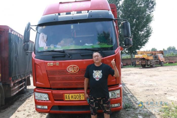 “解放動力發(fā)動機(jī)的節(jié)油效果我相信每一個(gè)開大車的老司機(jī)都或多或少聽說過,但只有親自體驗(yàn)過才能知道有多省油,我平時(shí)和村里開不同品牌車的同行拉同樣的貨送到同樣的地方百公里能比他們省2-3L油左右,目前這款J6L百公里只有14L左右的油耗,他們都不行。”