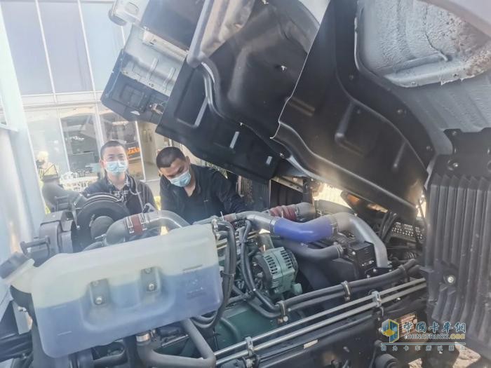 南非辦事處的李方龍、唐善東在服務(wù)現(xiàn)場檢測車輛