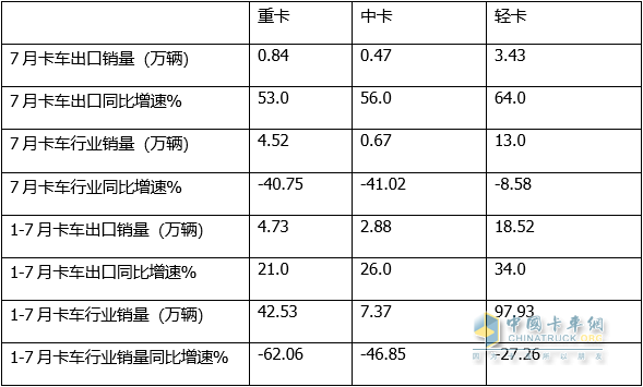 總之,無論是今年7月還是1-7月卡車出口數(shù)量均創(chuàng)近年同期新高。