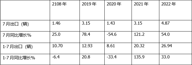 三、無論是7月還是1-7月出口數(shù)量均創(chuàng)近年同期新高