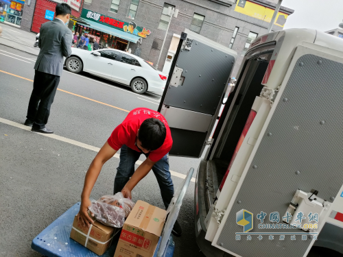 “社區(qū)團購的活很零碎,跑起來其實不輕松,好在這車開起來不累,車內(nèi)噪音更低,自動擋的操作方式,長時間駕駛不易疲勞。半米超低貨臺也是省勁神器,在沒有幫手卸貨的時候,每省下一分力氣就能多搬一箱貨物。這個核載量對于我來說也夠用了,一個區(qū)域要配送的貨都能裝完,差不多1噸左右,不用來回跑公司裝貨了”。