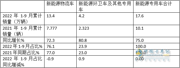 截圖1,2022年9月及1-9月新能源專用車銷量及同比(來源:中國汽車流通協(xié)會上牌信息)截圖1,2022年9月及1-9月新能源專用車銷量及同比(來源:中國汽車流通協(xié)會上牌信息)