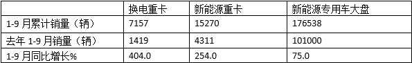 據(jù)分析今年9月同比增長主要是由于各地密集出臺支持新能源物流車發(fā)展的利好政策,同時在路權方面給予新能源物流車較多的優(yōu)惠措施,加上新能源重卡特別是換電重卡增速較高,另外去年同期新能源專用車銷量基數(shù)較低,因此推高了今年9月新能源專用車的銷量同比增速。
