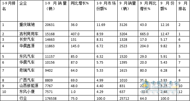 總之,今年前三季度重慶瑞馳霸榜,吉利商用車領漲;單月吉利商用車第一且增速最快。