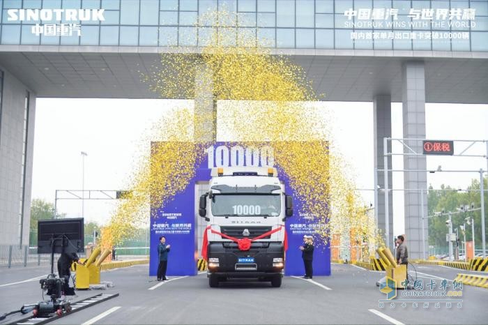 2022年10月31日,當(dāng)55輛中國重汽汕德卡C7H重卡依次駛出濟(jì)南綜合保稅區(qū),標(biāo)志著中國重汽重卡單月出口成功突破10000輛,創(chuàng)造了國內(nèi)重卡企業(yè)單月出口的最高紀(jì)錄,引領(lǐng)中國重卡出口銷量再攀新高峰, 標(biāo)志著“中國智造”的重卡產(chǎn)品在國際市場的影響力再度提升!