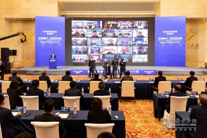 當(dāng)天,“中國重汽 與世界共贏——國內(nèi)首家單月出口重卡突破10000輛 ”活動在濟(jì)南舉辦。山東省委常委、濟(jì)南市委書記劉強(qiáng),濟(jì)南市委副書記、市長于海田,山東重工集團(tuán)黨委書記、董事長,中國重汽集團(tuán)黨委書記、董事長譚旭光,山東省、濟(jì)南市相關(guān)部門領(lǐng)導(dǎo)參加活動。全球100多個國家、310多家經(jīng)銷商、客戶代表線上參加。